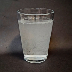 #PraTodosVerem2: A foto mostra um copo de vidro cheio de água sobre um fundo preto. A água presente no copo possui microbolhas de ar que dão um aspecto branco e turvo para o líquido.